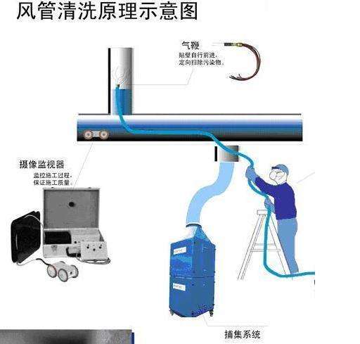 一、直接吸塵法(適合大、中型矩形風管)拆除各種風口 → 專業單位測定風管內積塵情況 → 放入檢查機器人觀察風管內部情況,確定清洗方案(可制作光盤) → 放入清掃機器人打松積塵 → 放入吸塵機器人吸走灰塵 → 放入噴霧消毒機器人噴灑消毒劑 → 放入檢查機器人觀察風管清洗后情況(可制作光盤) → 專業單位測定風管清洗后情況 → 安裝各種風口 → 出具清洗完工報告。 二、揚塵吸塵法(適合中、小型矩形風管)拆除各種風口 → 專業單位測定風管內積塵情況 → 放入檢查機器人 → 觀察風管內部情況,確定清洗方案(可制作光盤) → 在需清洗的風管二頭放置二個氣囊并于其中一邊開一個圓形工藝孔,并把該孔與捕集器的吸入口用軟管聯接 → 再在另一邊放入清掃機器人邊走邊打松灰塵由捕集器同時把灰塵吸走 → 放入噴霧消毒機器人噴灑消毒劑 → 放入檢查機器人觀察風管清洗后情況(可制作光盤) → 專業單位測定風管清洗后情況 → 安裝各種風口 → 出具清洗完工報告。 三、軟軸清洗法(適合任何規格矩形、方、圓形風管)拆除各種風口 → 專業單位測定風管內積塵情況 → 放入檢查機器人 → 觀察風管內部情況,確定清洗方案(可制作光盤) → 在需清洗的風管二頭放置二個氣囊并于其中一邊開一個圓形工藝孔,并把該孔與捕集器的吸入口用軟管聯接 → 再在另一邊放入清掃軟軸機邊推邊打松灰塵由捕集器同時把灰塵吸走即“楊塵吸塵法”(或通過和專用高壓吸塵器同時工作可實現對上述風管的清洗與吸塵同步完成“直接吸塵法”) → 放入噴霧消毒軟軸機噴灑消毒劑 → 放入檢查機器人觀察風管清洗后情況(可制作光盤) → 專業單位測定風管清洗后情況 → 安裝各種風口 → 出具清洗完工報告。 |
