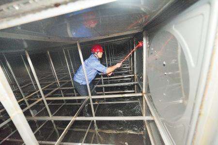 清洗水箱必須二人以上方可操作,頂上要有一名監護人員,負責向水箱內送新風,防止清洗人員余氯中毒 ![]() 物業轄區生活水箱清洗操作規程 一.工作內容: 根據《泉州市飲用水二次供水衛生管理辦法》,每半年對物業水箱、蓄水池清洗一次,使水箱出水水質達到國家衛生防疫要求,步驟如下: 二.工作要求: 1.作業前 (1)操作人員必須具有衛生防疫部門核發的體檢合格證。 (2)檢查相關閥門是否處于清洗工作要求的狀態。 (3)水箱清洗應盡量避開用水高峰,以不影響物業內用戶正常辦公為前提,并應提前24小時通知物業內用戶。 (4)檢查工作器具、清洗潔具、臨時水源、通風設備是否到位,并打開水箱進水蓋。 2.作業中 (1)開啟放水閥門,放水。 (2)清洗人員進入水箱底部,用百潔布等專用工具和水龍頭對水箱四壁和底部進行清洗和沖刷,然后用符合《生活飲用水衛生標準》的消毒液,對箱壁表面進行噴霧、涂刷。 (3)清洗水箱必須二人以上方可操作,頂上要有一名監護人員,負責向水箱內送新風,防止清洗人員余氯中毒。 3.作業后 (1)清洗結束后,關閉清洗水箱排污閥,打開水箱進水閥開始蓄水。 (2)對水箱加蓋、加鎖,收好清潔工具,整理場地。 (3)對水箱出水取樣,送市防疫站化驗。 (4)對水箱清洗過程認真記錄,并建立水箱檔案,保存成都市衛生防疫部門的水質化驗報告。 二次供水、生活用水水箱水池清洗熱線:0595-22608118 |